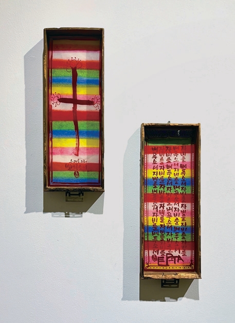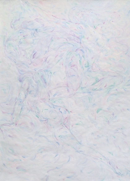 비유적 장치를 통해 현실로 전환되는 입체점을 회화로 기록한다. 주관적 인식 속에서 형상화 된 것들은 현실의 감각을 소환하는 상징적 통로로 작동하며 비유적 장치로 실재를 다루는 태도를 보여준다. 언어 이전의 것들을 촉화 위에서 하나의 장면으로 고정되지 않고 접히고 쌓인다. 이는 중첩으로 인해 소멸하는 것이 아니라 더 깊이 내재함을 의미한다.